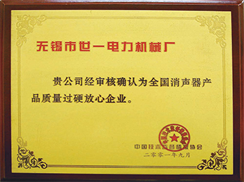 The factory regards quality as life, and has taken the lead in passing ISO9001:2008 international quality system certification. It is an AAA enterprise of "respecting contract and keeping promise", the first batch of "five-star" enterprises and qualified measurement units in Wuxi, and has become a qualified supplier of "national muffler quality excellent and assured enterprise" and domestic large-scale boiler plants. At the invitation of the State Environmental Protection Administration, the technical conditions for the identification of high pressure gas emission small hole muffler (hjt382-2007) were formulated.